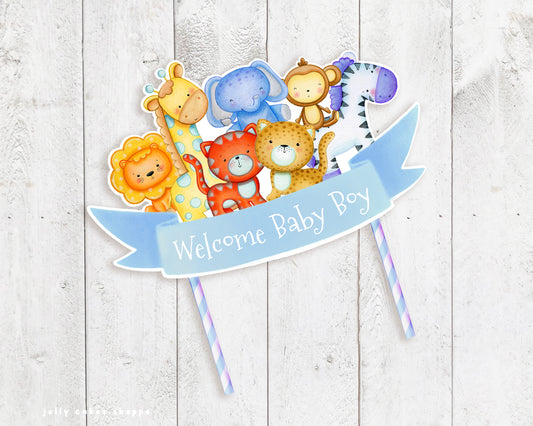 Safari Animals Cake Topper, Baby's 1st Birthday, Jungle Animals Baby Shower Cake Decoration