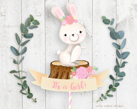 Woodland Bunny Baby Shower Cake Topper for Girl, Baby Girl's 1st Birthday Cake Topper