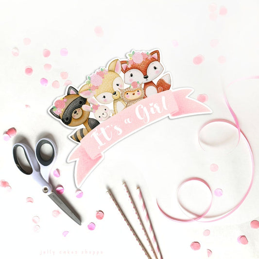 Woodland Animals Baby Shower Cake Topper, Baby Girl's 1st Birthday Cake Topper