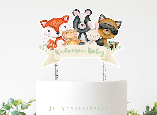 Printable Woodland Animals Cake Topper for Gender Neutral Baby Shower