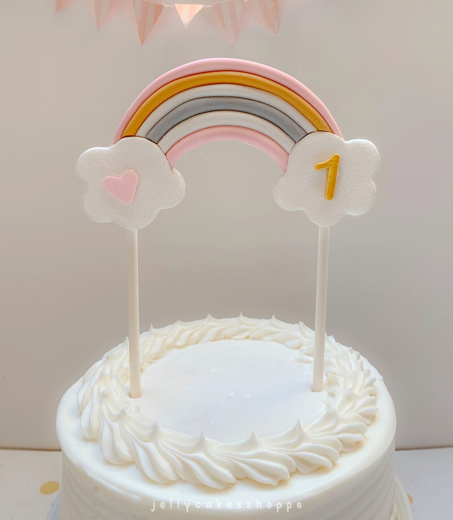 ♥ comes with 6" sticks to insert into cake. These can be popped off after the party and the rainbow makes a cute keepsake for your child's room