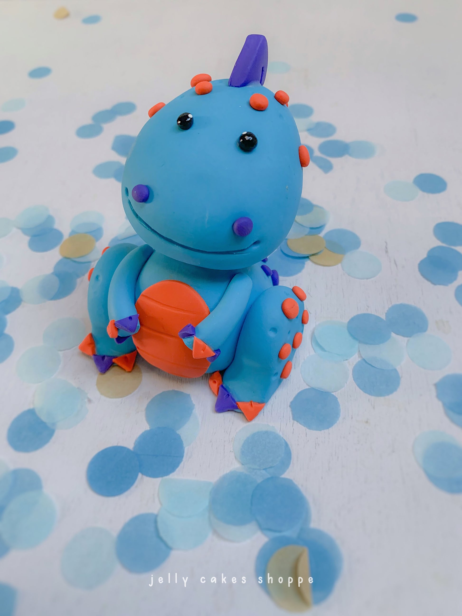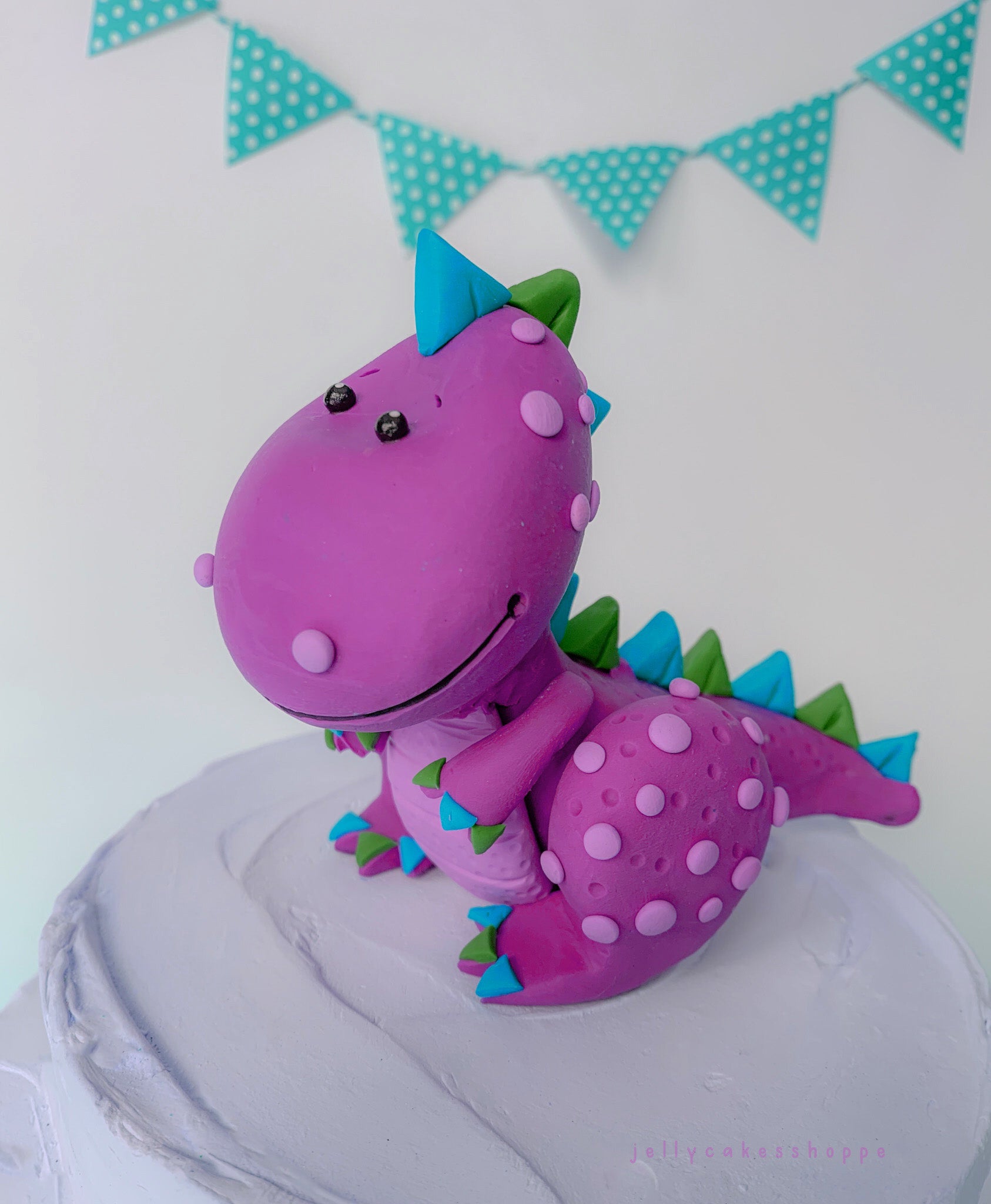 ♥ dinosaur is made from polymer clay and is NON-EDIBLE. Polymer clay is a non-toxic modeling medium that is cured with heat. Once dry, it is hard and durable and lasts indefinitely. Your topper is easy to care for. Store at room temperature before the party, wipe clean of frosting with a damp cloth after the party, place on a shelf to enjoy as a keepsake.