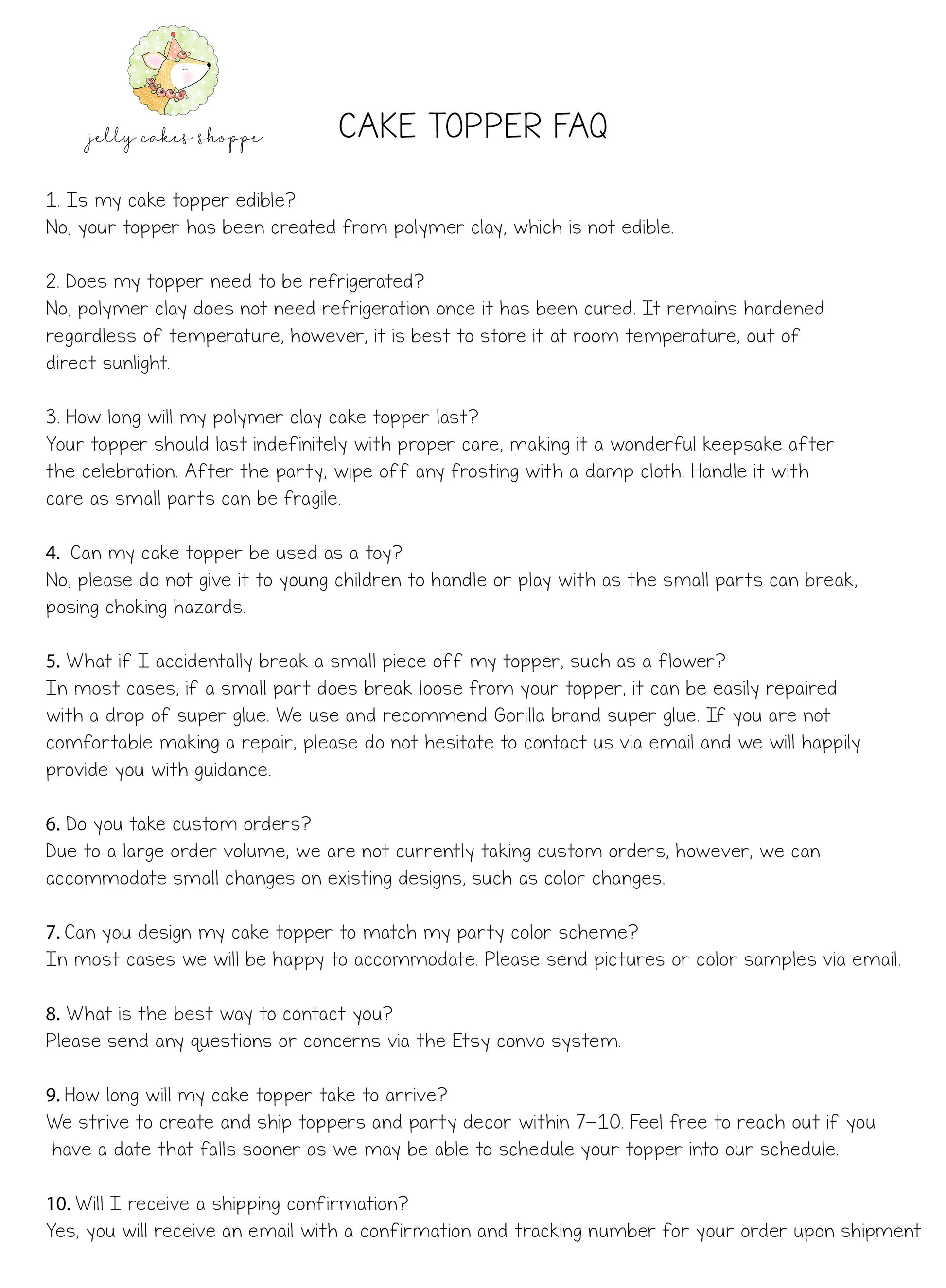 ♥ Please refer to the cake topper FAQ in the last photo for more information on polymer clay toppers.