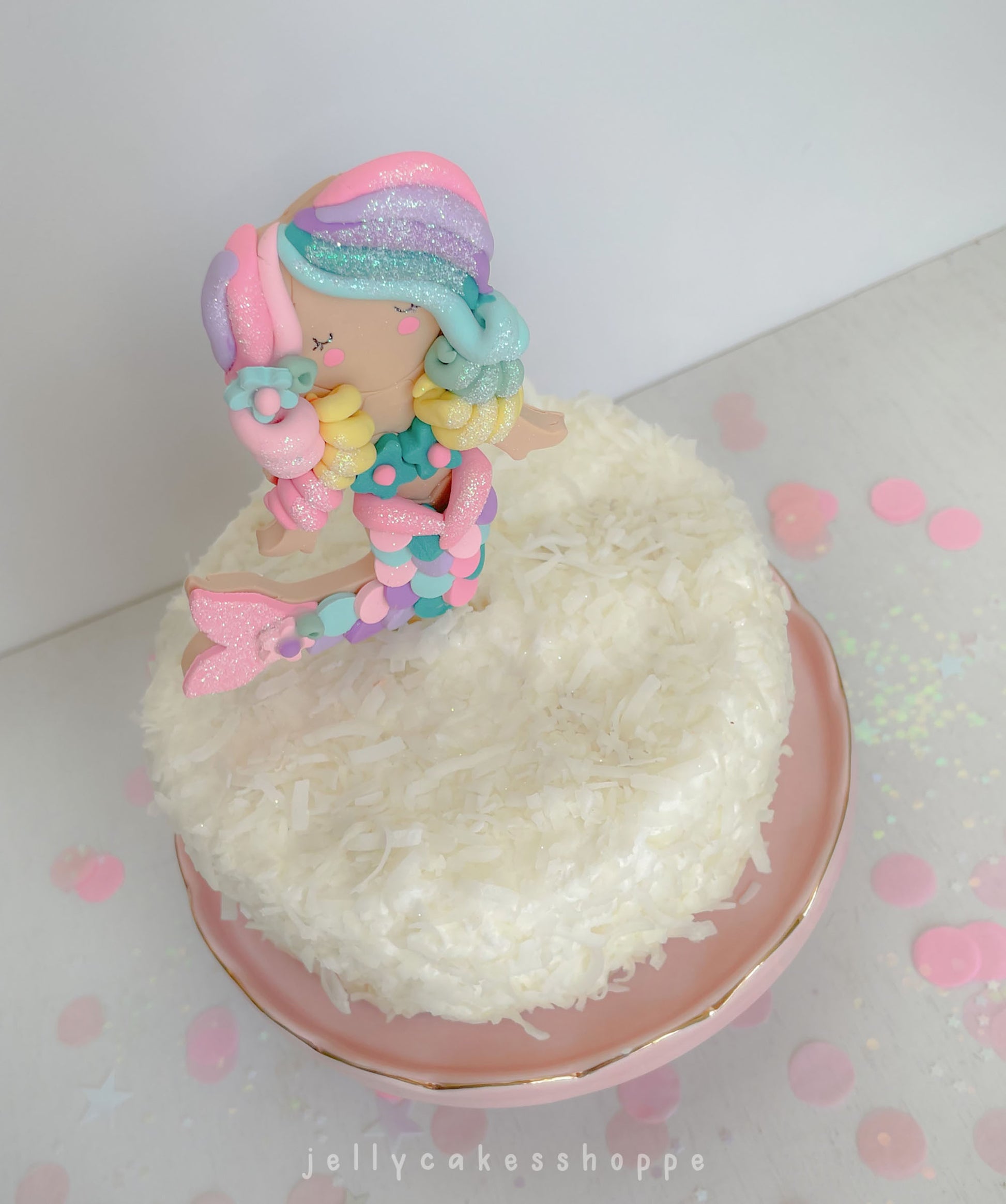 ♥ This pretty pastel rainbow mermaid cake topper will take your basic cake from simple to spectacular and makes the perfect addition to mermaid and under the sea-themed parties. She has been sculpted from non-edible polymer clay which lasts indefinitely so she can be saved as a special keepsake after the party. Also makes a cute centerpiece for tables. ♥