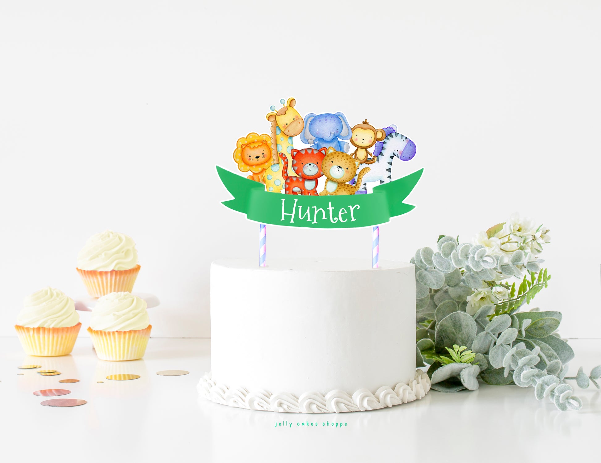 Safari Animals Cake Topper, Baby's 1st Birthday, Jungle Animals Baby Shower Cake Decoration