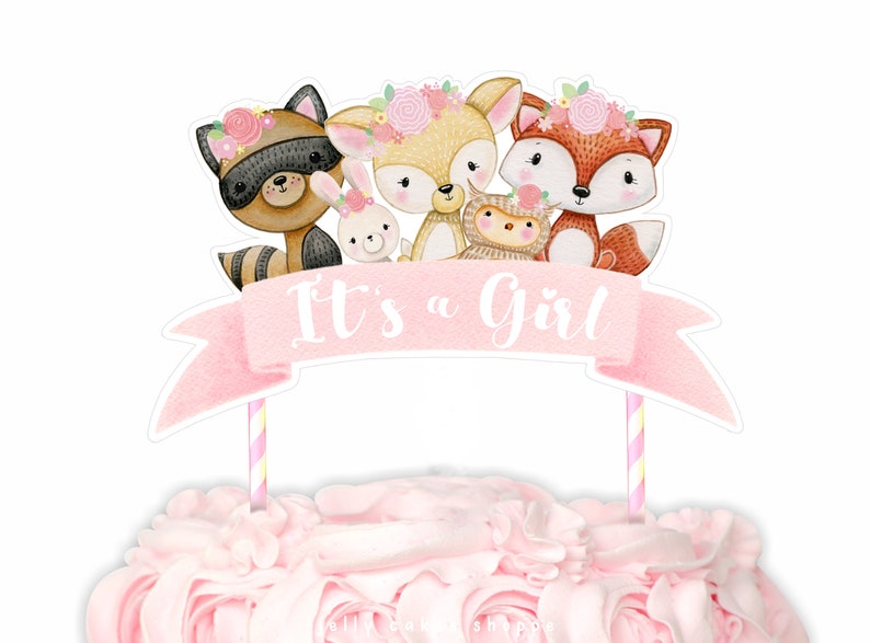 Woodland Animals Baby Shower Cake Topper, Baby Girl's 1st Birthday Cake Topper